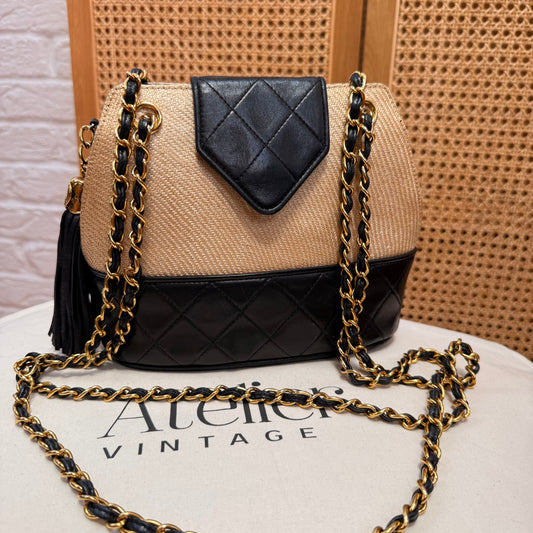 Chanel 1989 Rare Raffia & Leather Tassel Two Way Bag