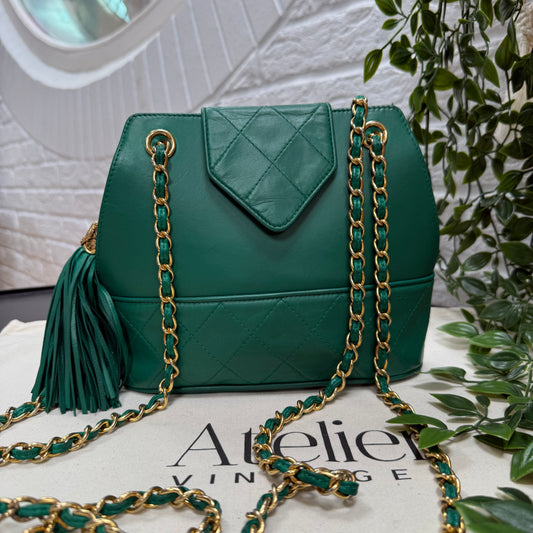 Chanel 1989 Emerald Green Cross Body Envelope Flap tassel bag