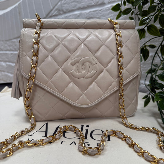 Chanel 1989 Rare Ivory Tassel Envelope Flap