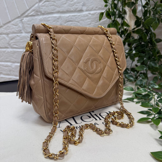 Chanel 1989 Rare Dark Beige Tassel Envelope Flap