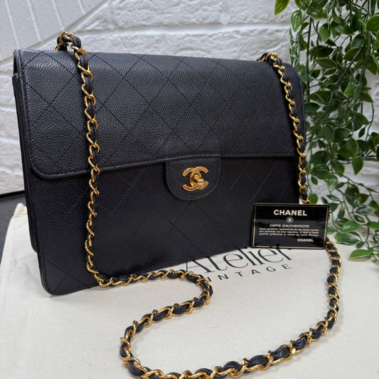 Chanel 1997 Very Rare Midnight Blue Caviar Single Flap