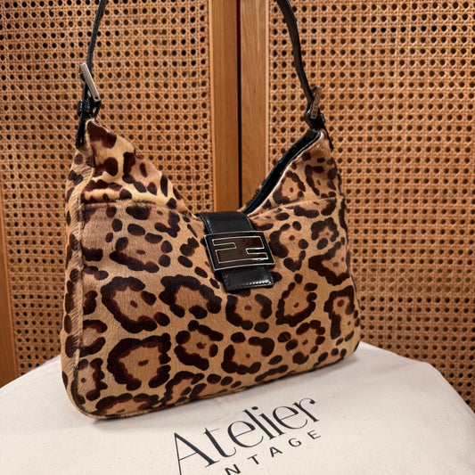 Fendi 1990s Original Mamma Baguette In Leopard Print Pony Hair