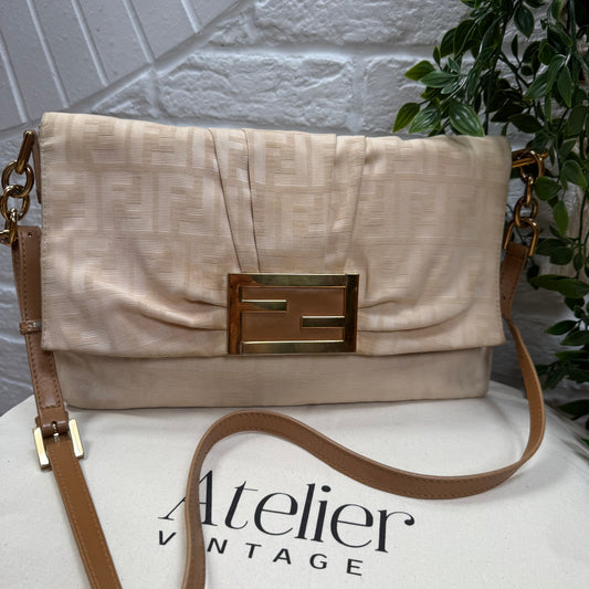 Fendi 1990s Mia Shoulder Bag in Beige & Tan
