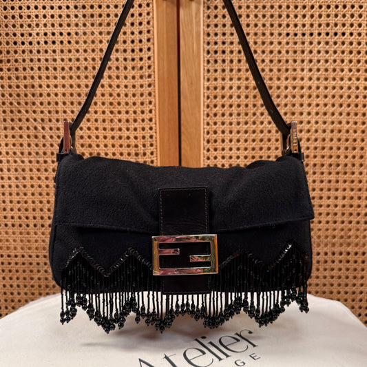 Fendi 2002 Rare Fendi Baguette Black - Limited edition Cashmere and waterfall glass beads
