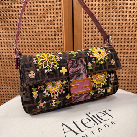 Fendi 2004 Rare Baguette Embroidered Zucca Print - Limited Edition glass bead and embroidered with exotic leather