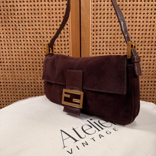 Fendi 1999 Fendi Baguette - Chocolate Suede & Enamel Closure