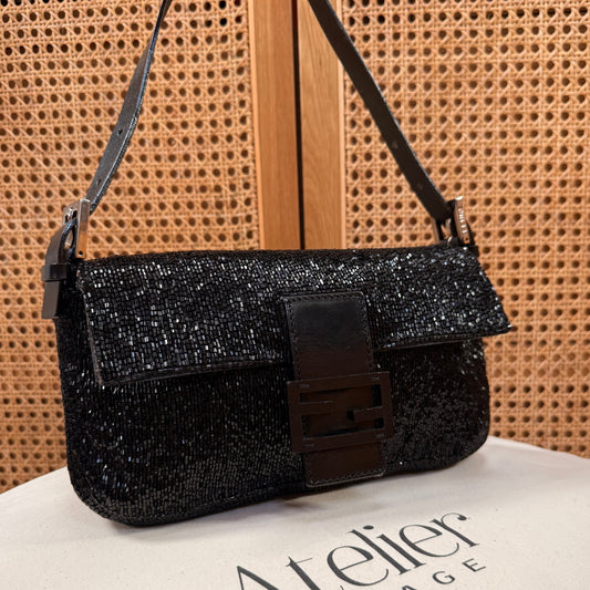 Fendi 2001 Rare Fendi Baguette Black - Limited Edition full glass beaded with black leather