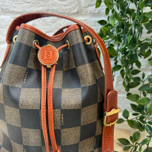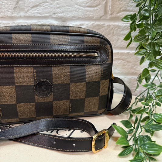 Fendi Pequin Checkerboard Camera Style Cross Body Bag