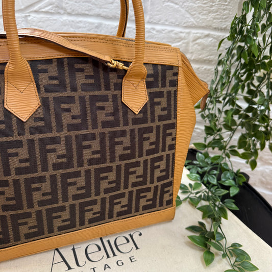 Fendi 1980s Zucca Canvas & Leather Two Way Bag