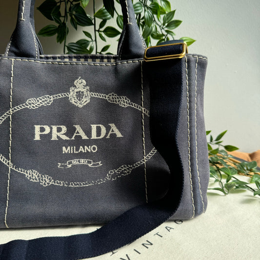Prada Canapa Denim Blue Canvas Two Way Tote