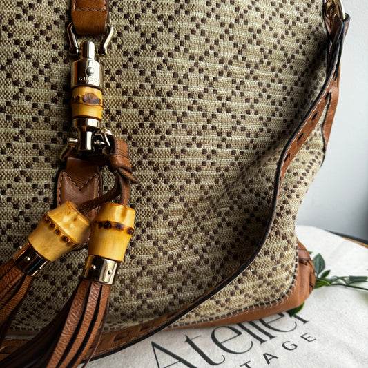 Gucci Jackie Bamboo Large Canvas Tote 2 Way