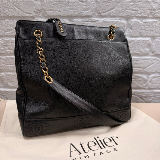 Chanel 1994 Black Triple CC Caviar Tote