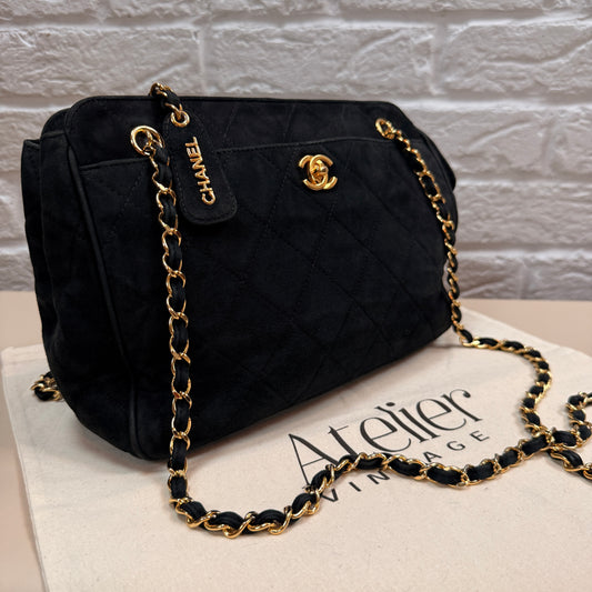 Chanel 1996 Rare Black Suede CC Turnlock Crossbody Tote with 24k Gold Hardware