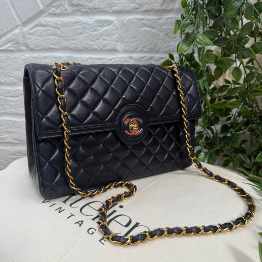 Chanel 1993 Navy Paris limited edition two tone turnlock single flap