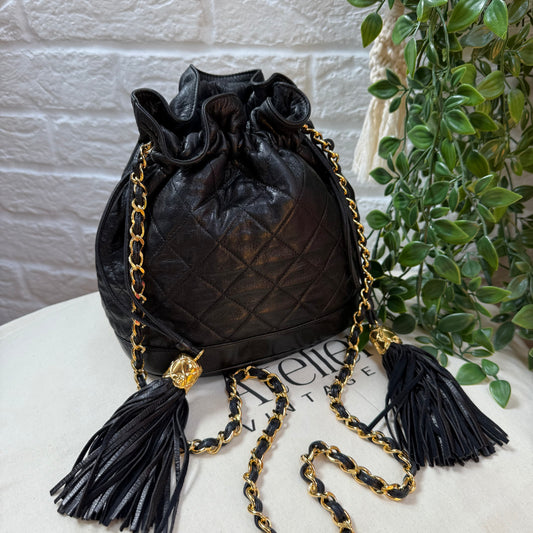 Chanel 1989 Lambskin Quilted Cross Body Bucket Bag