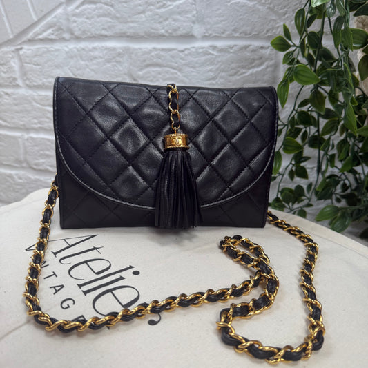 Chanel 1986 Rare Black Half Moon Tassel single flap
