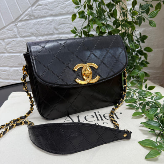 Chanel Early 1980s Quilted Half Moon CC Turnlock Single Flap