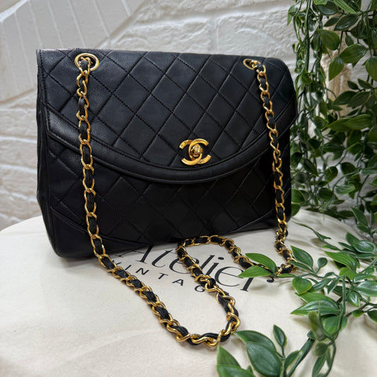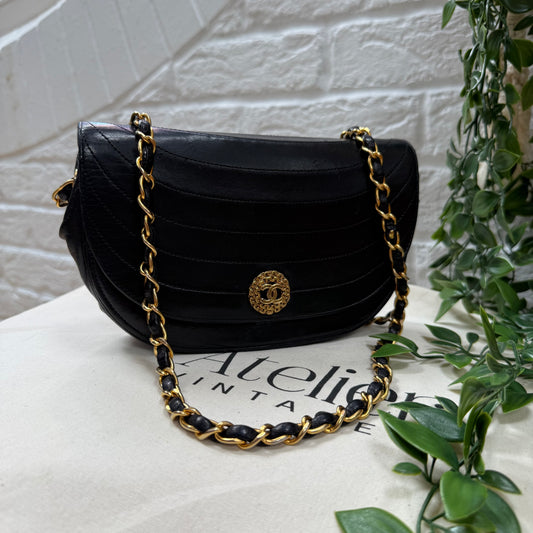 Chanel 1986 black half moon two way single flap