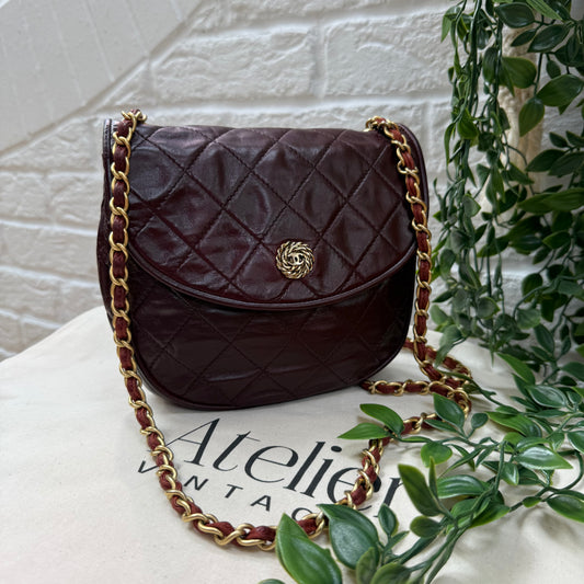 Chanel Early 1980s Bordeaux CC button half moon flap