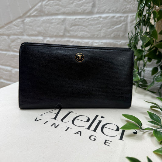 Chanel 2003 Black CC Button Long Purse with Zip Pocket