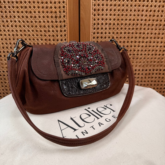 Prada 2002 Brown & Embellished Jewel Two Way Shoulder Bag