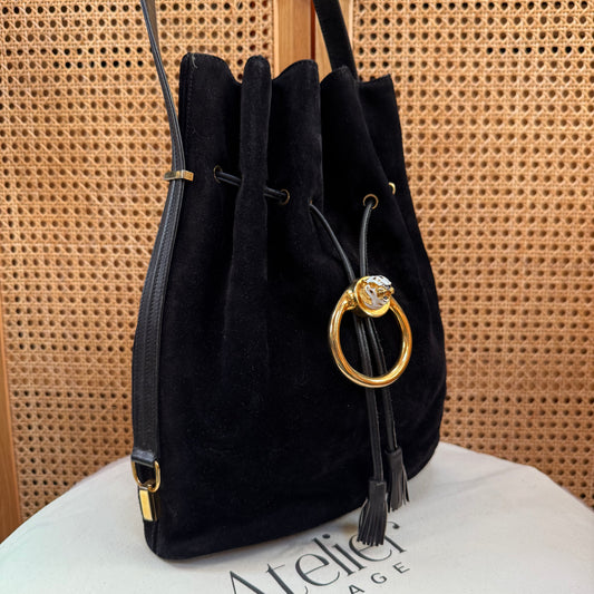 Gucci 1990s Rare Enamel Leopard Suede Bucket Bag