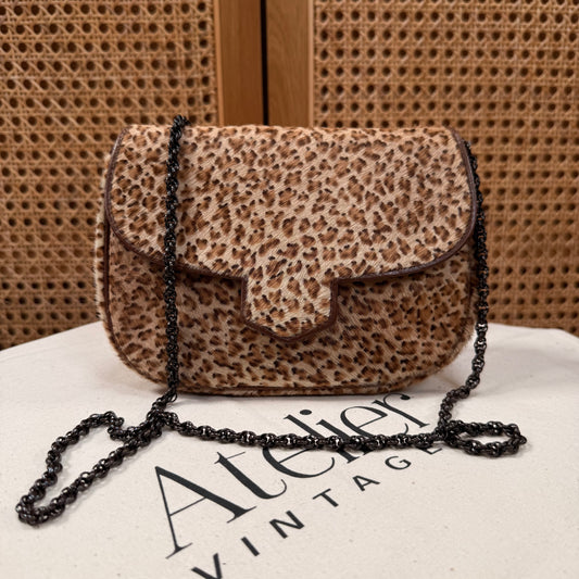 Saint Laurent 1990s Leopard Print Pony Hair Shoulder Bag