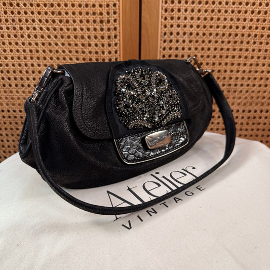 Prada 2002 Black & Embellished Jewel Two Way Shoulder Bag