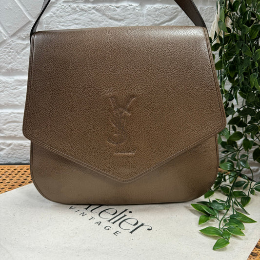 Saint Laurent 1980s Taupe Envelope Cross Body Bag