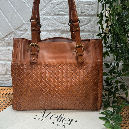 Bottega Veneta 1980s Tan Brown Intrecciato Tote