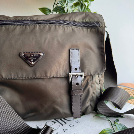 Sold outPrada Khaki Nylon Cross Body Satchel