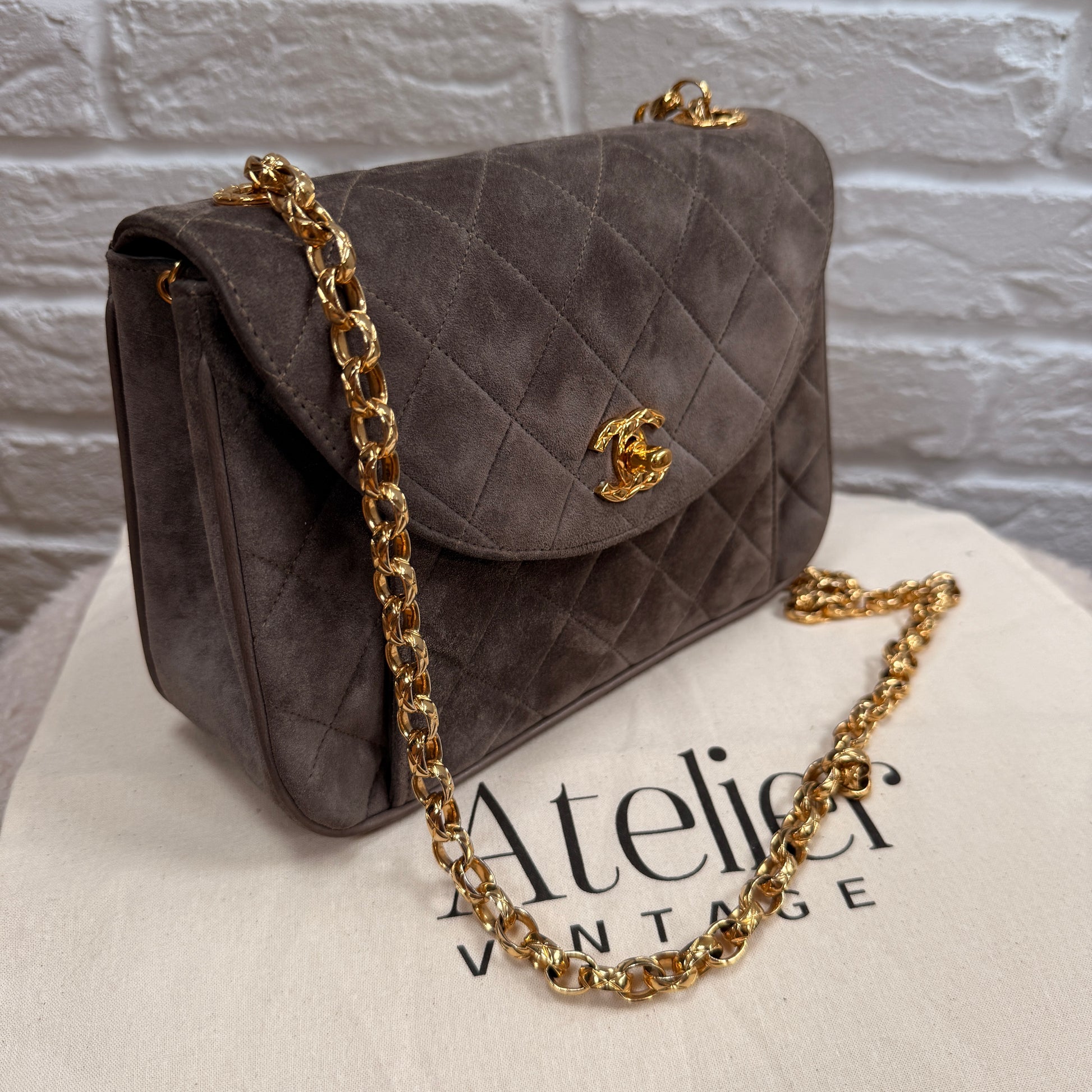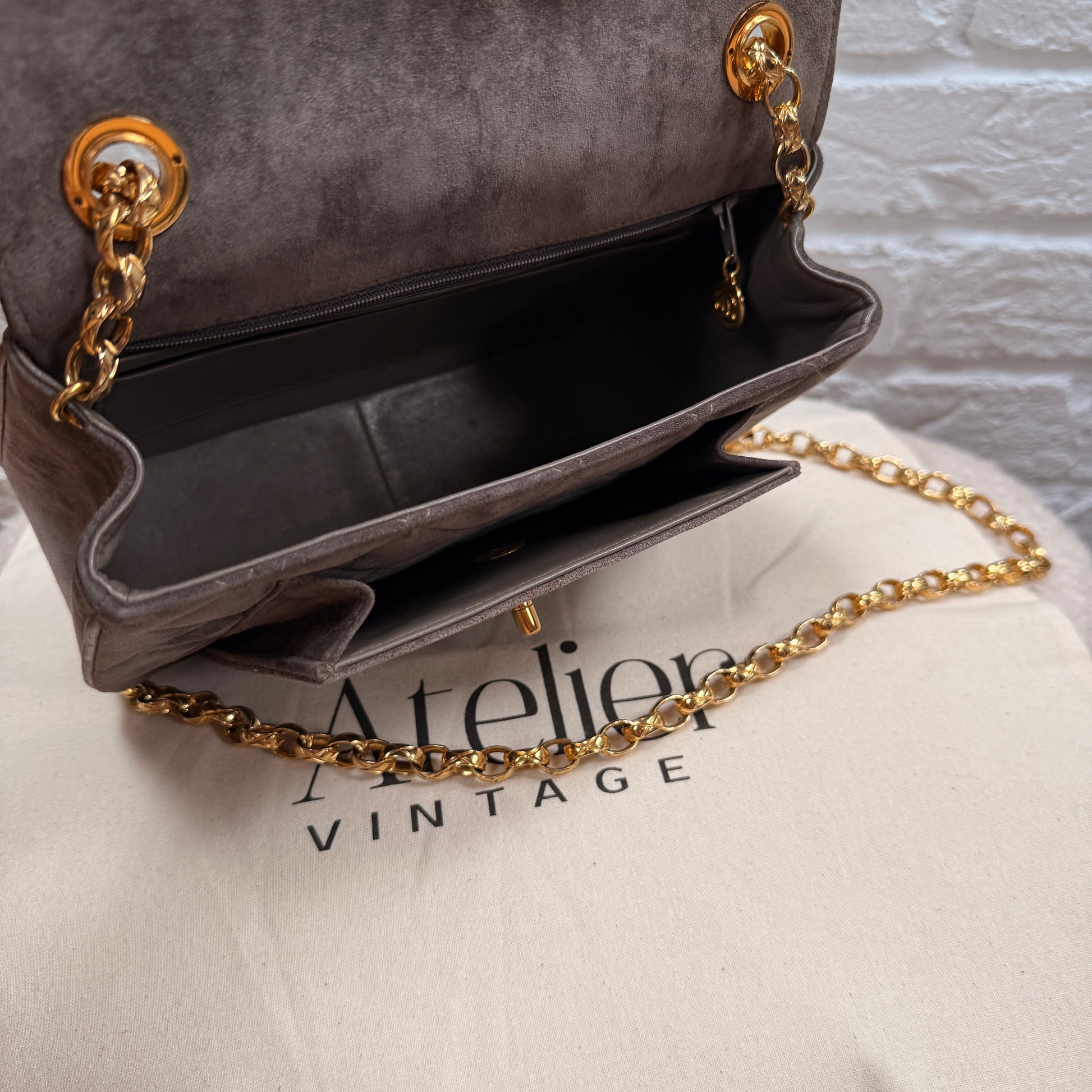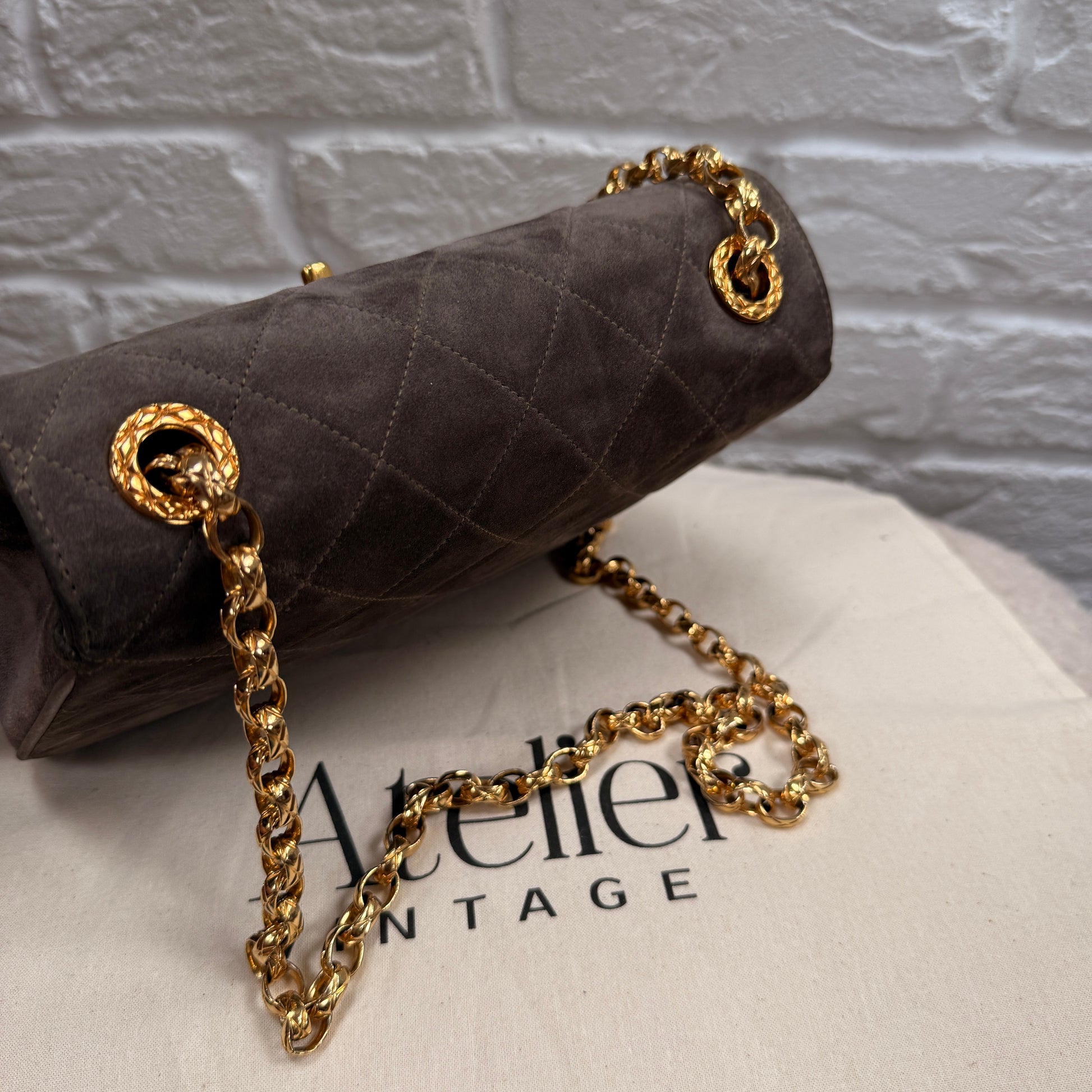 Chanel 1980s Ultra Rare Chanel Limited Edition Bijoux Chain in Taupe Suede and 24k Hold Hardware