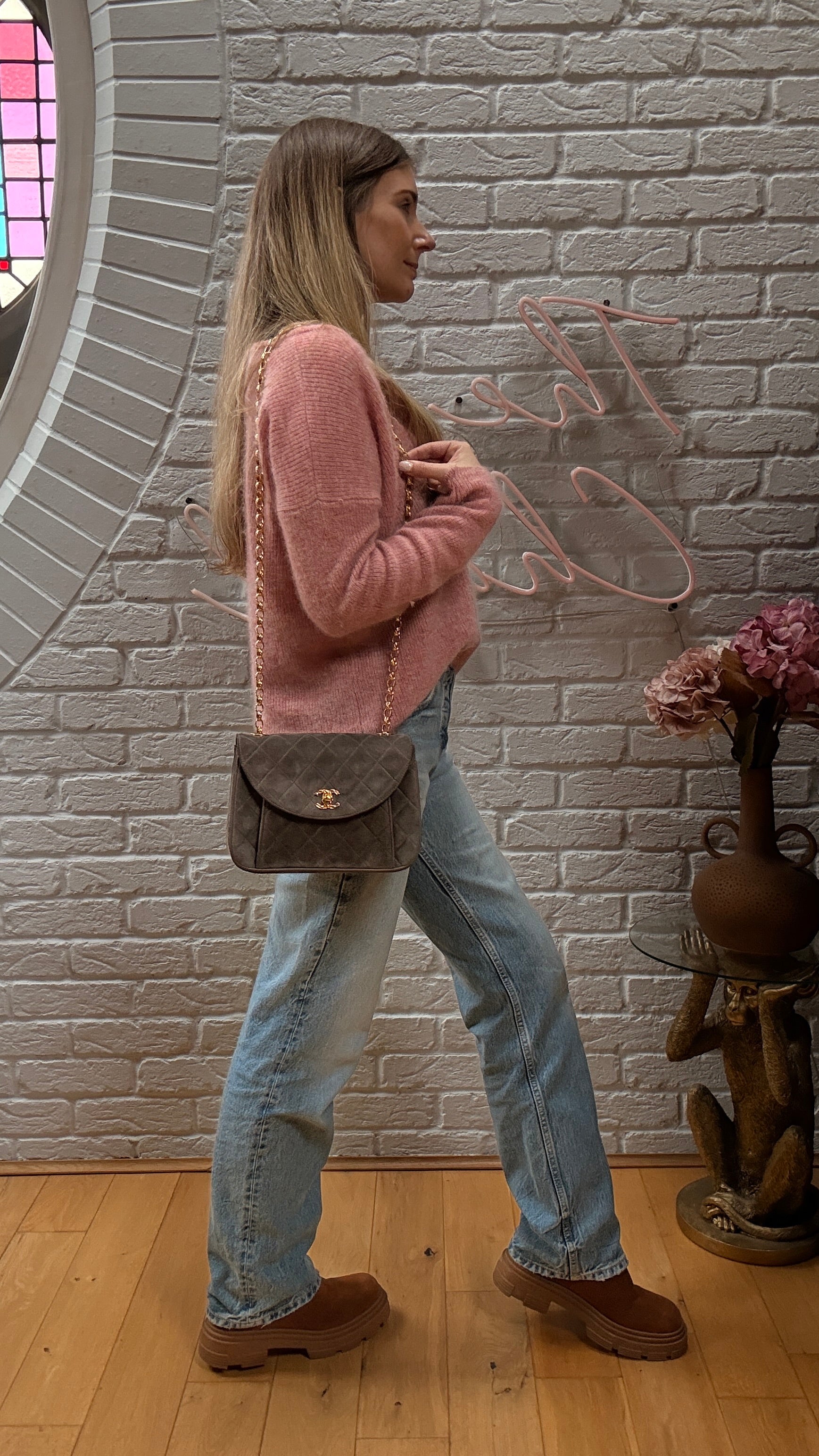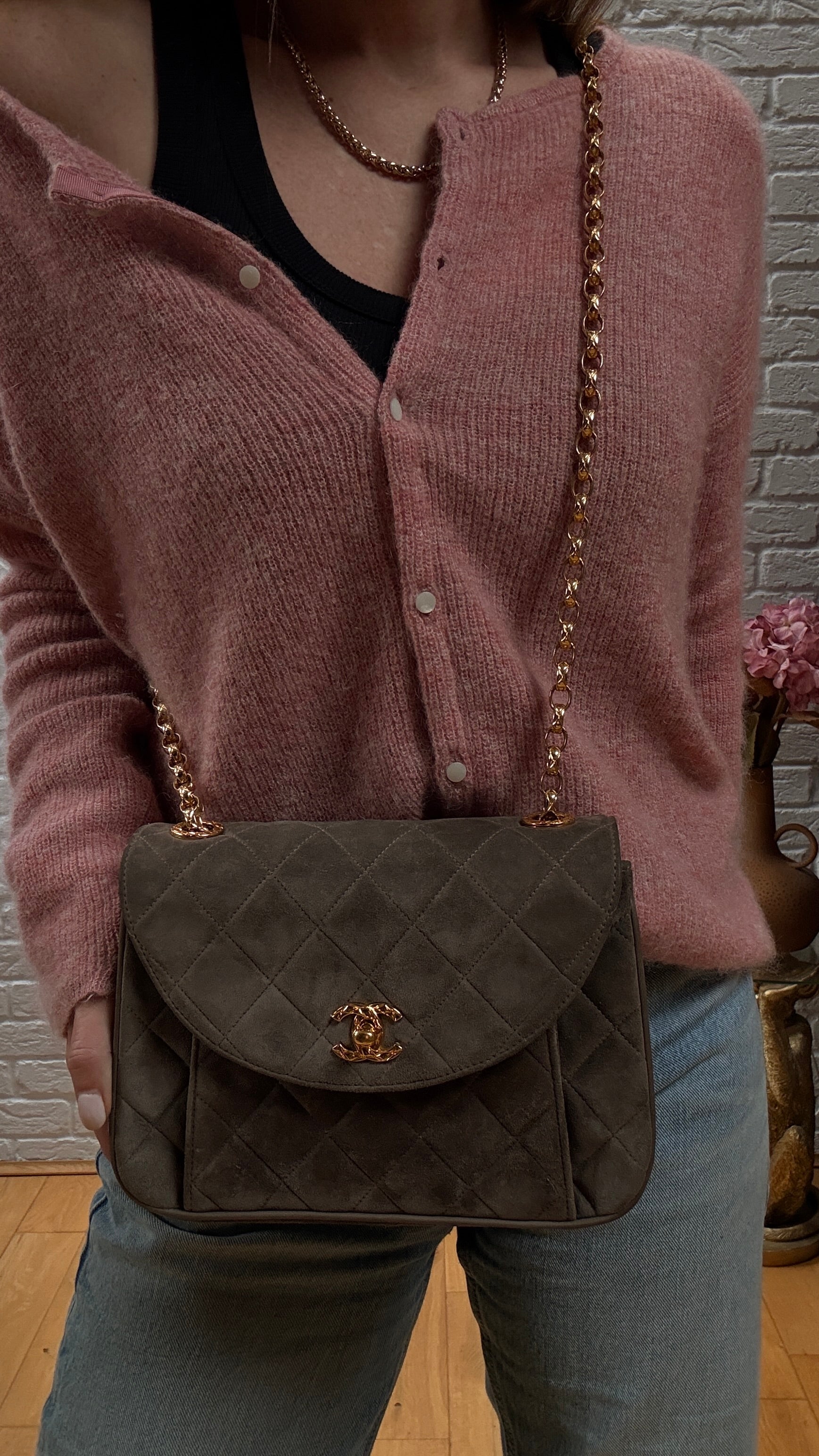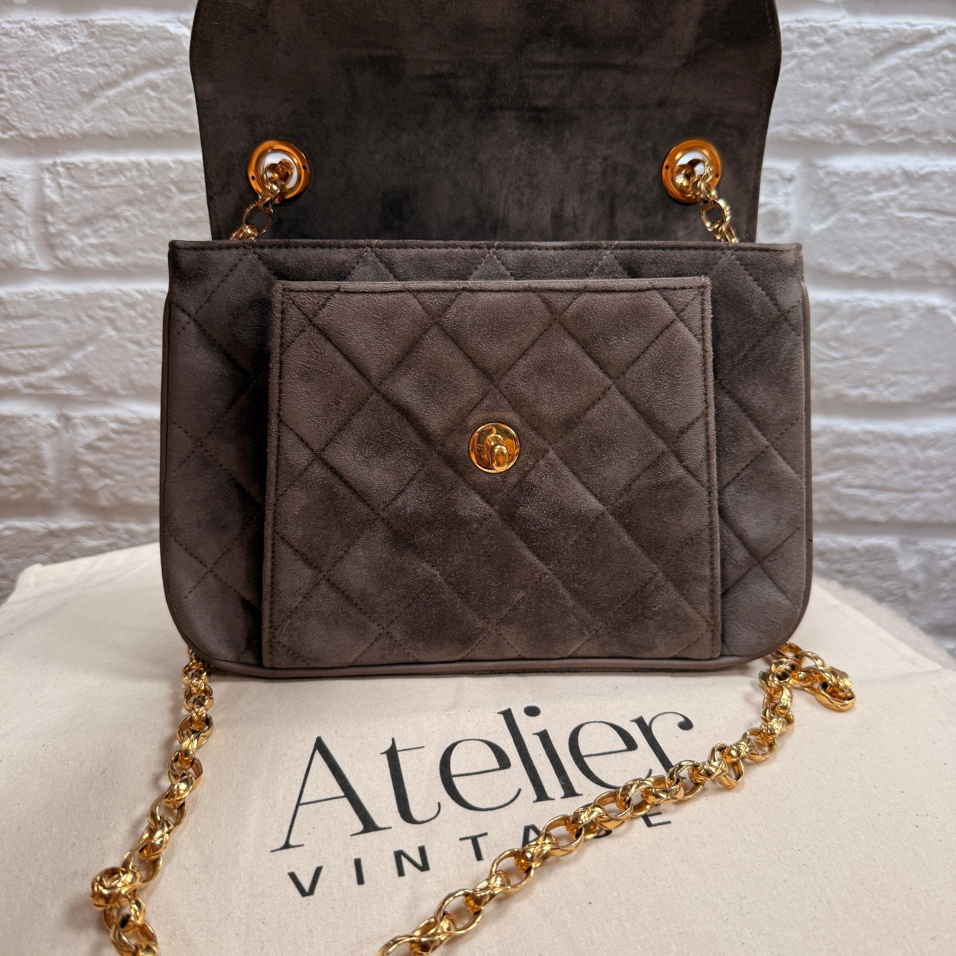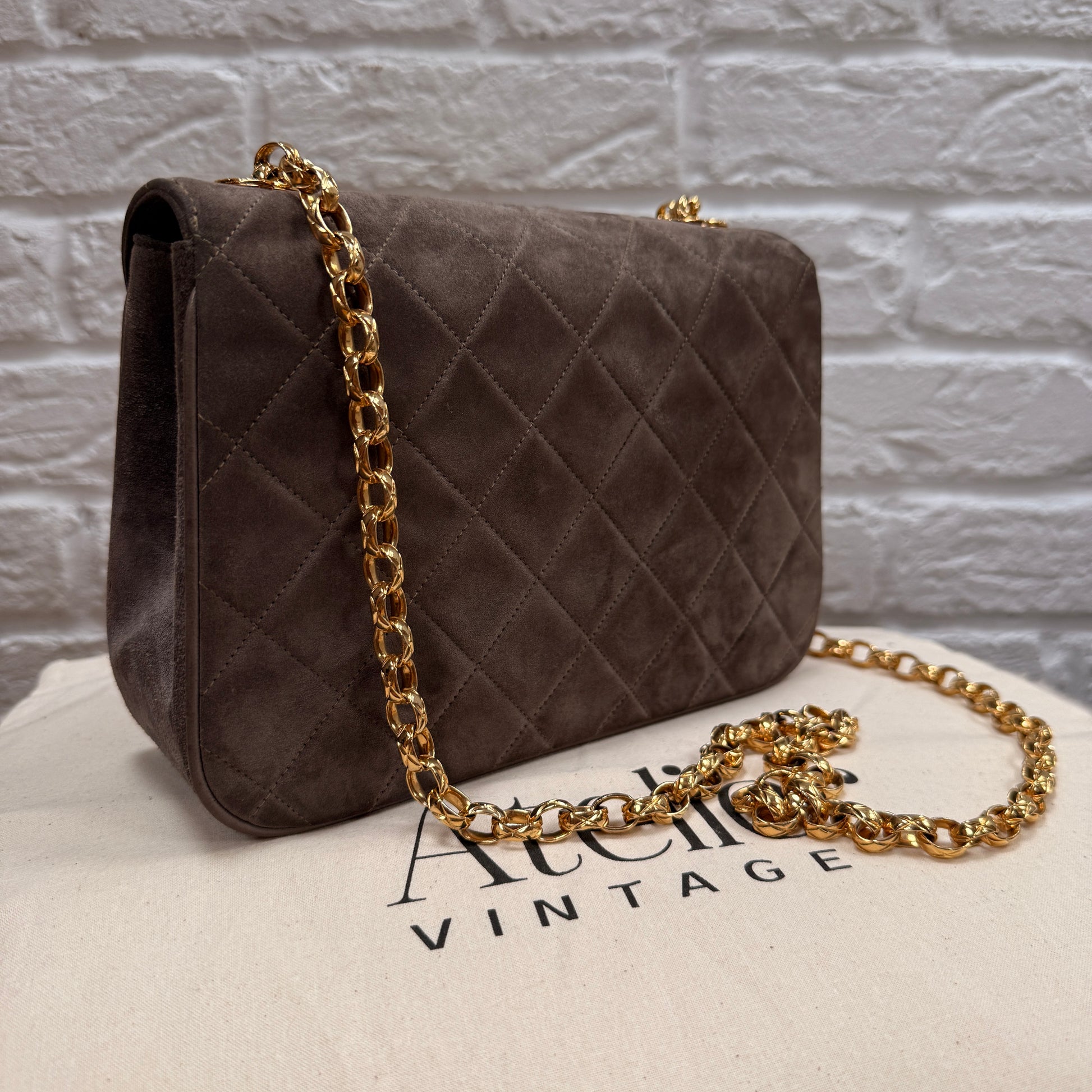 Chanel 1980s Ultra Rare Chanel Limited Edition Bijoux Chain in Taupe Suede and 24k Hold Hardware