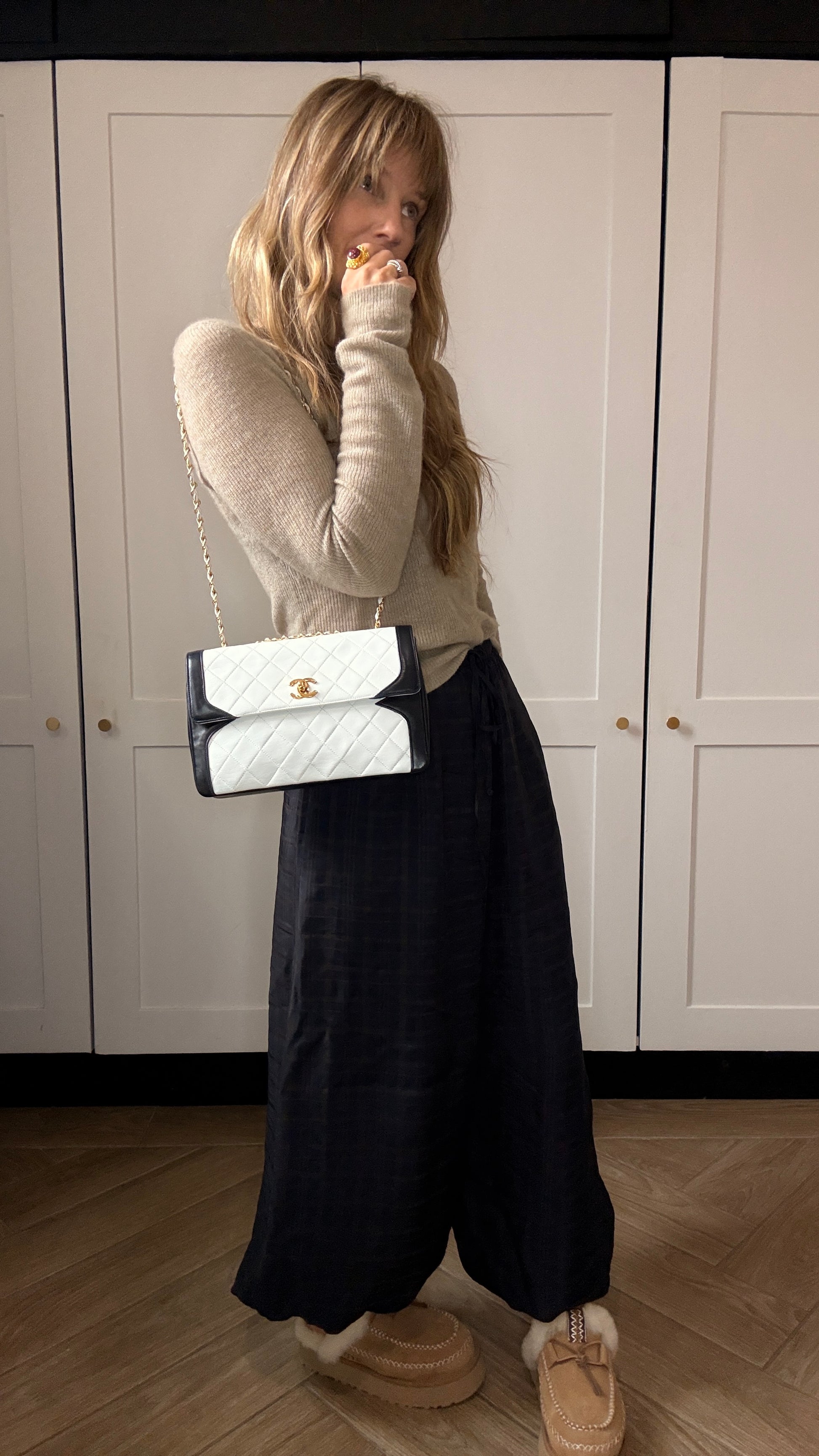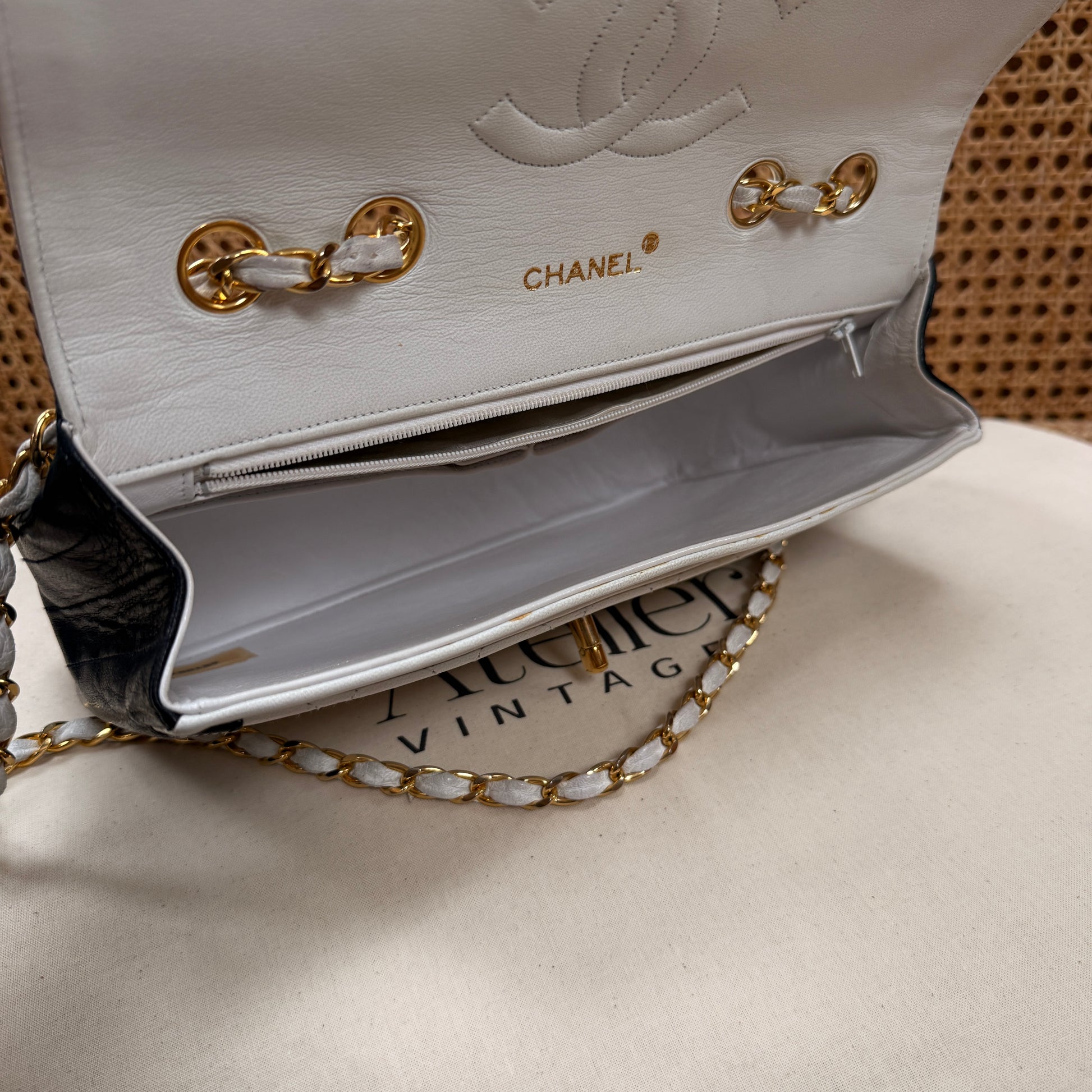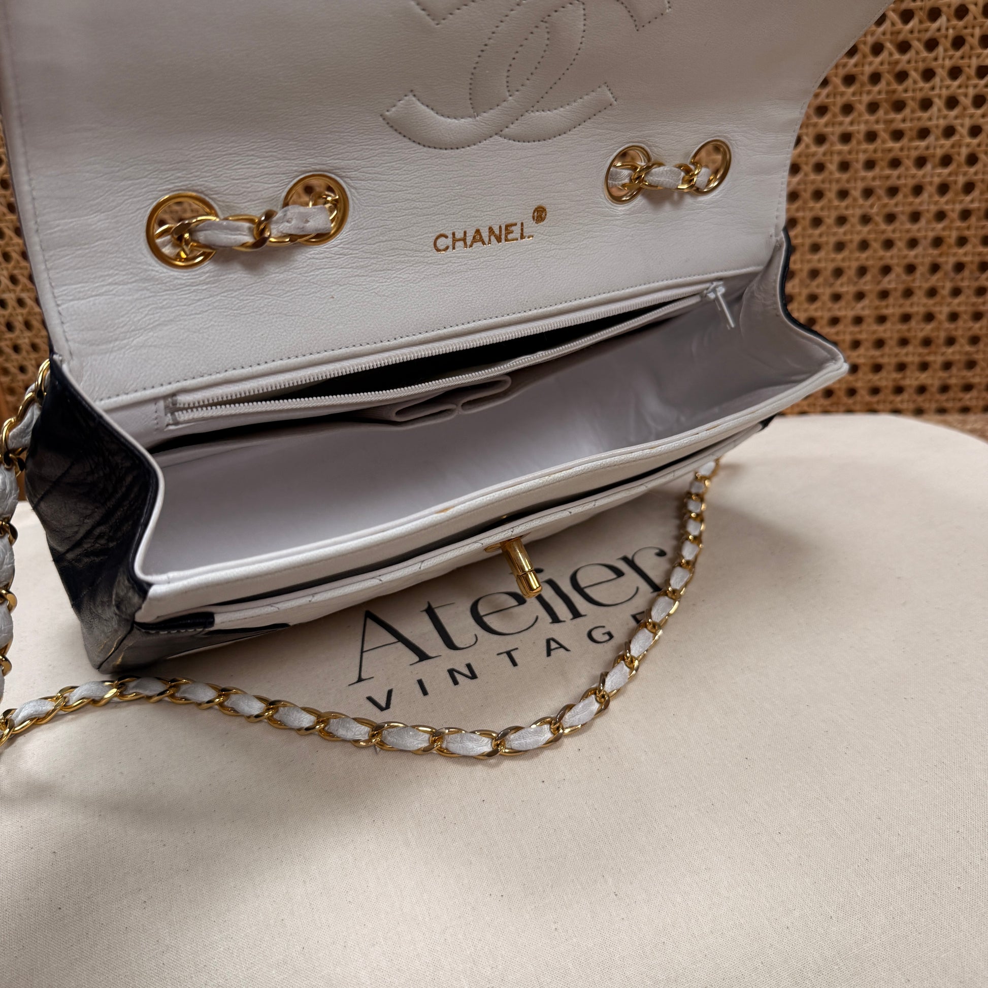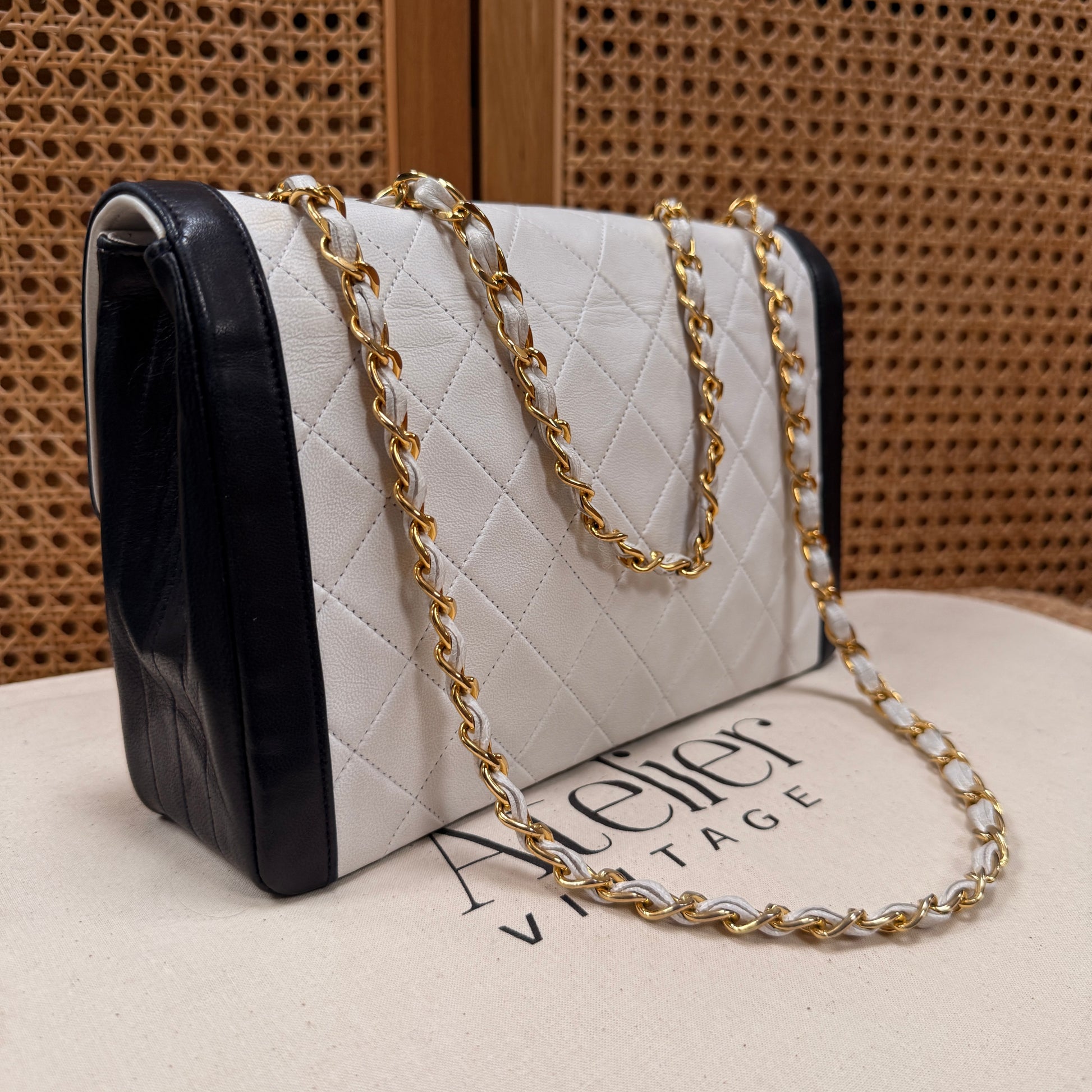 Chanel 1986 Rare Ivory & Navy Limited Edition Single Flap