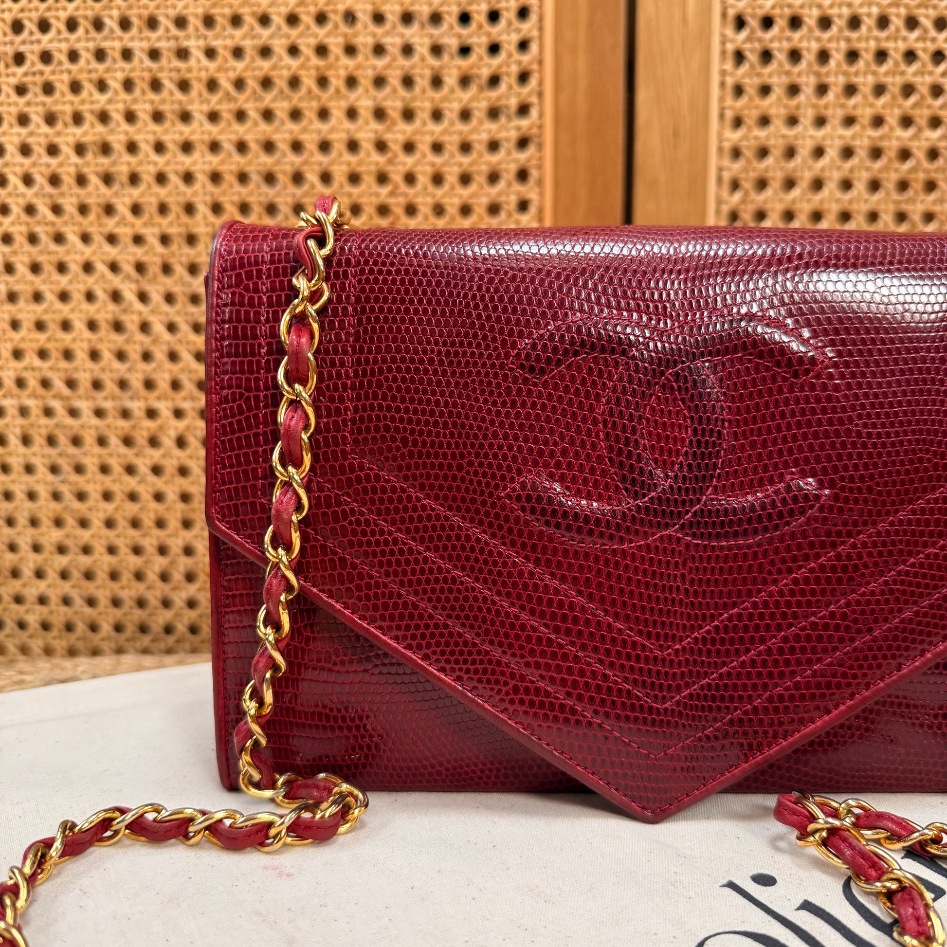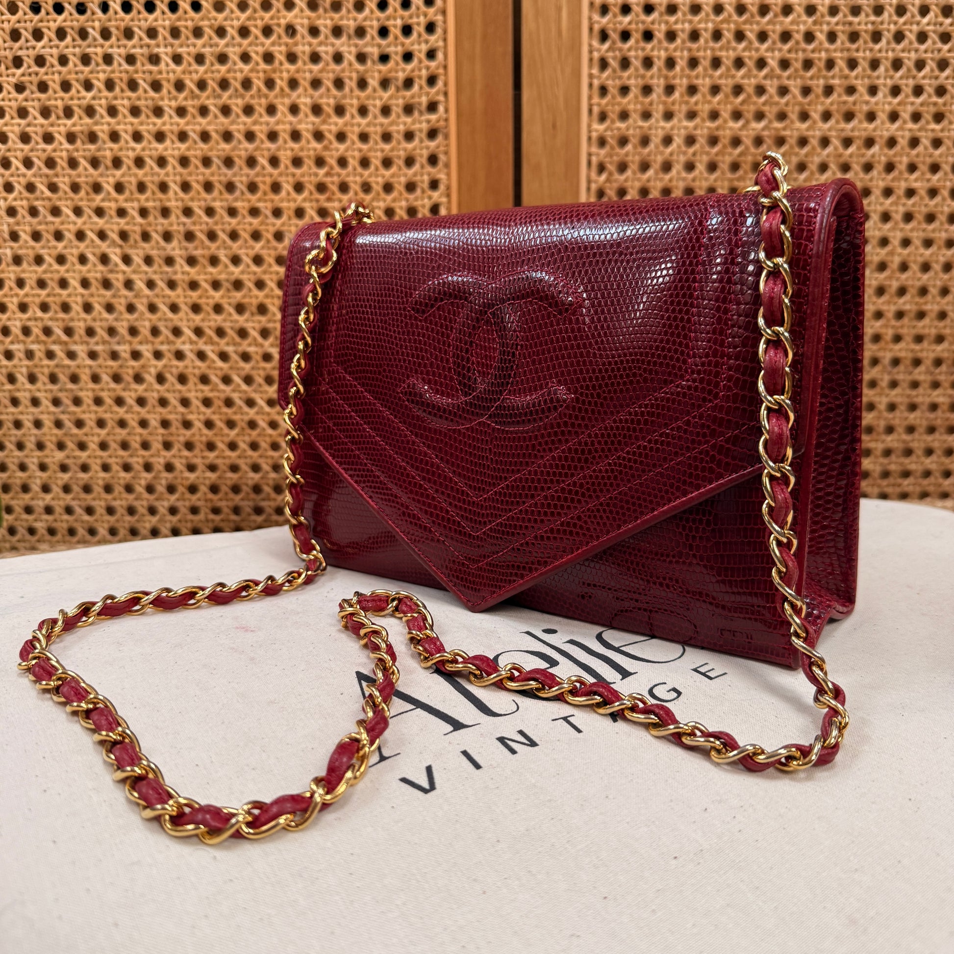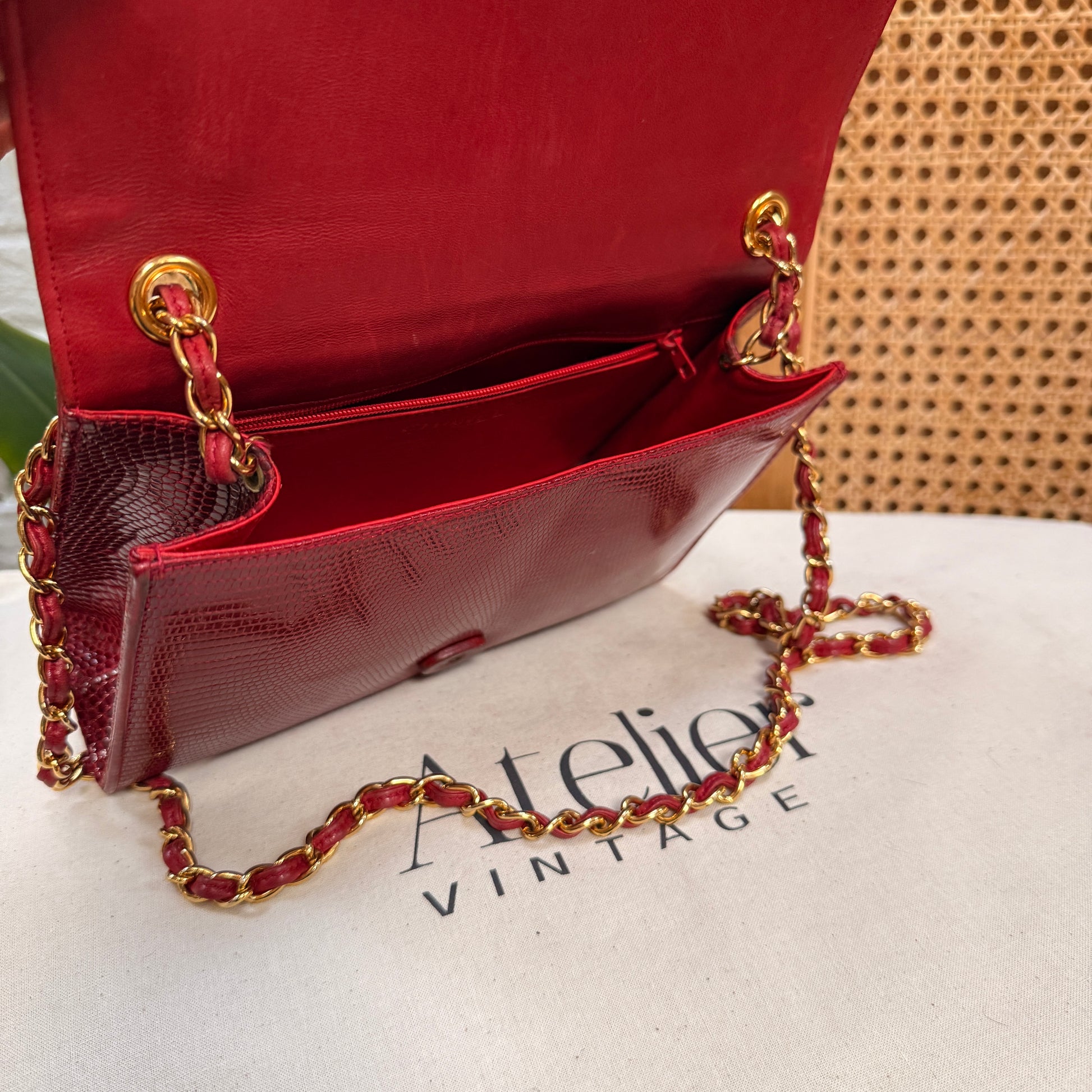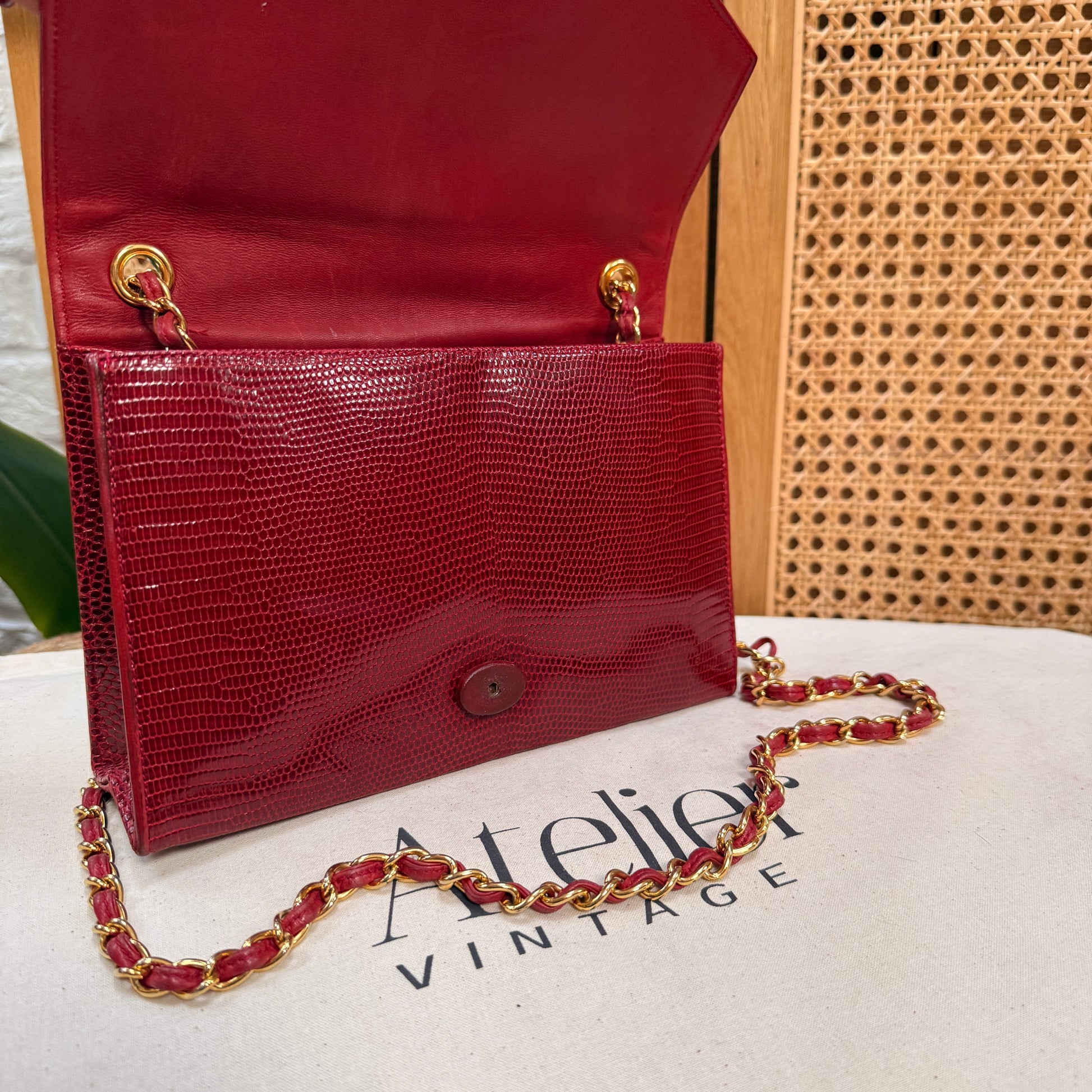 Chanel 1986 Rare Red Exotic Leather Envelope Flap