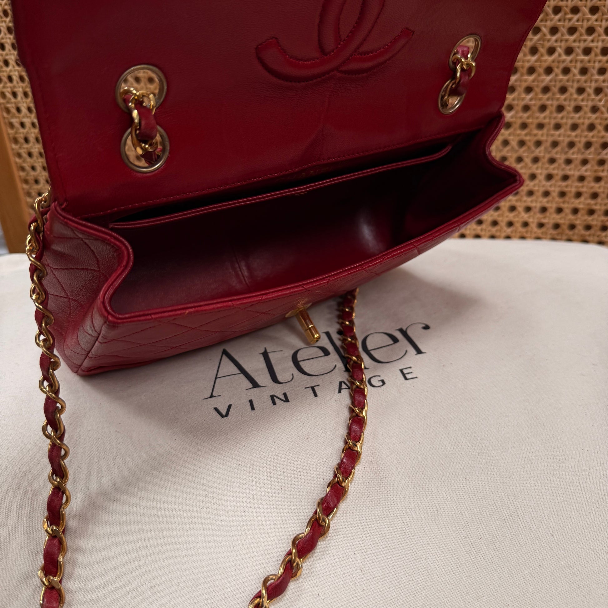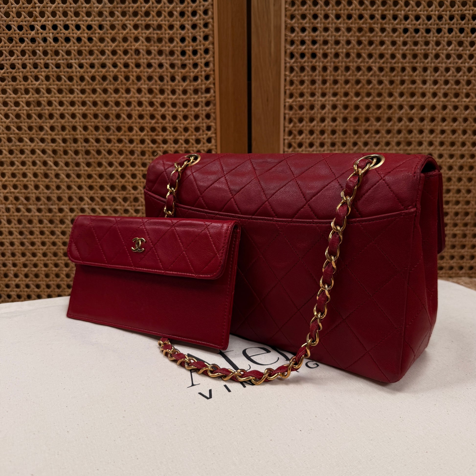 Chanel 1989 Red Classic Single Flap with purse