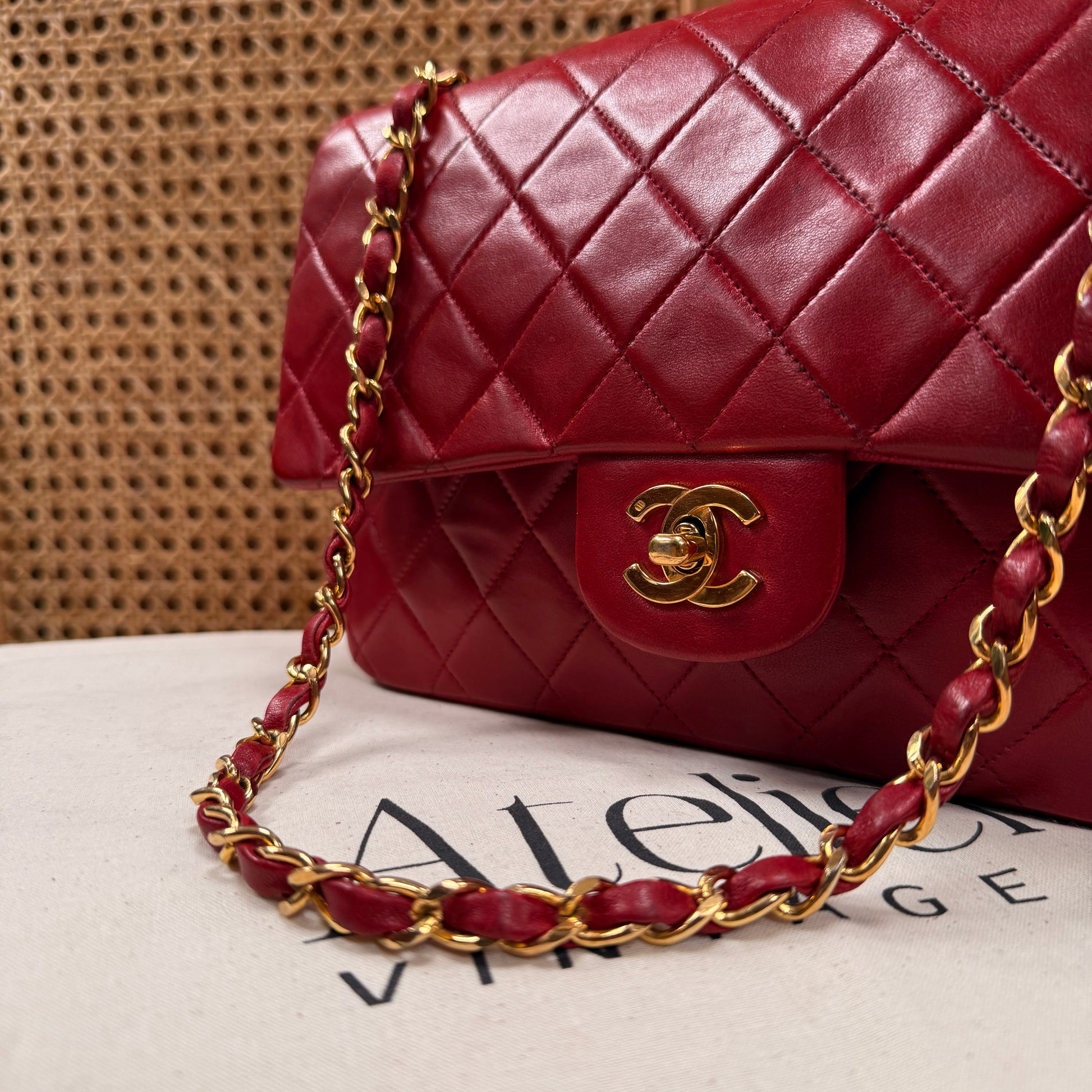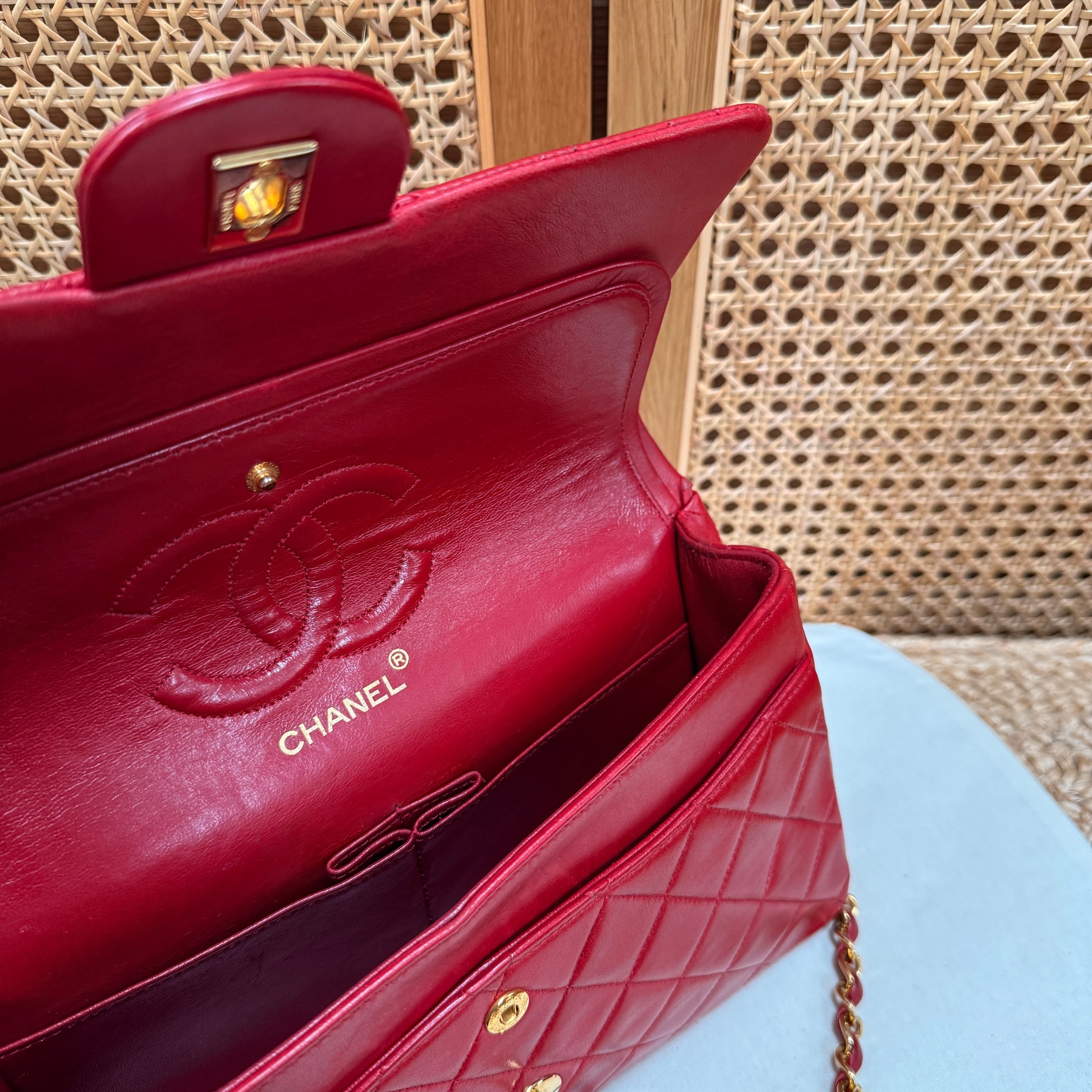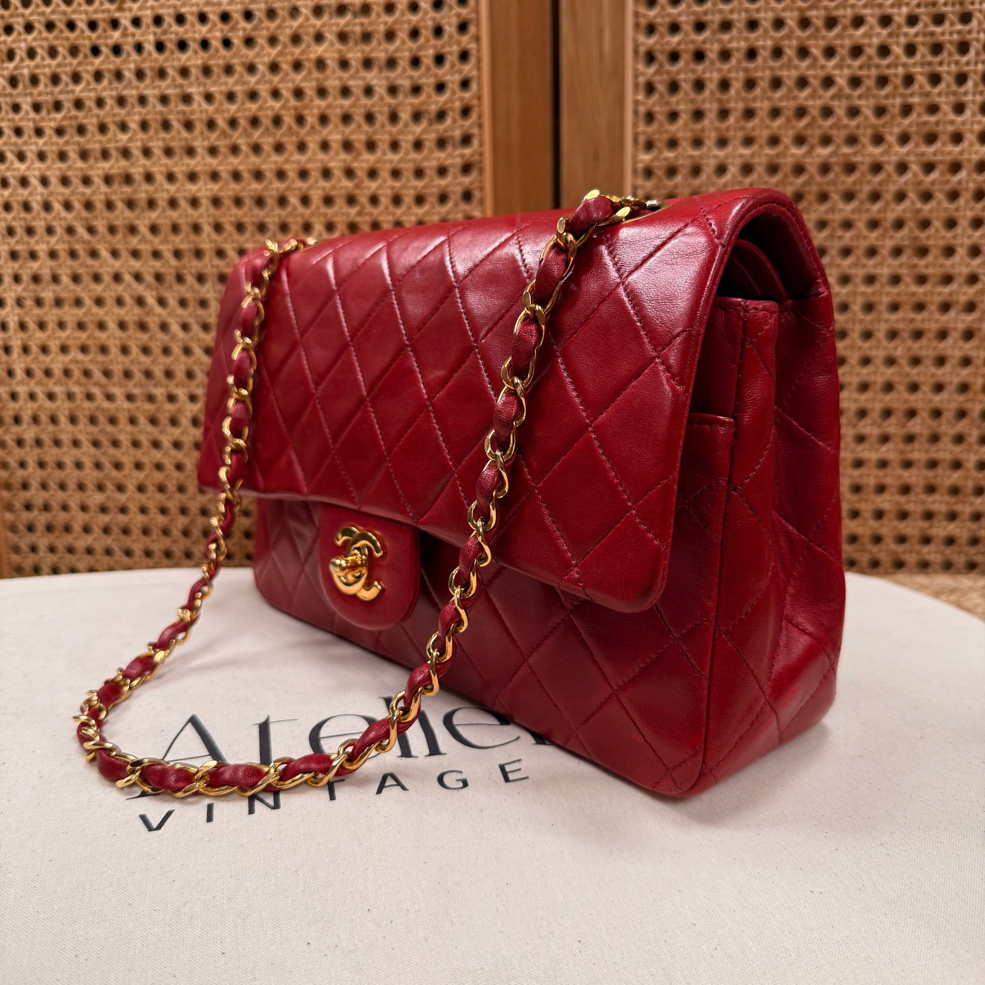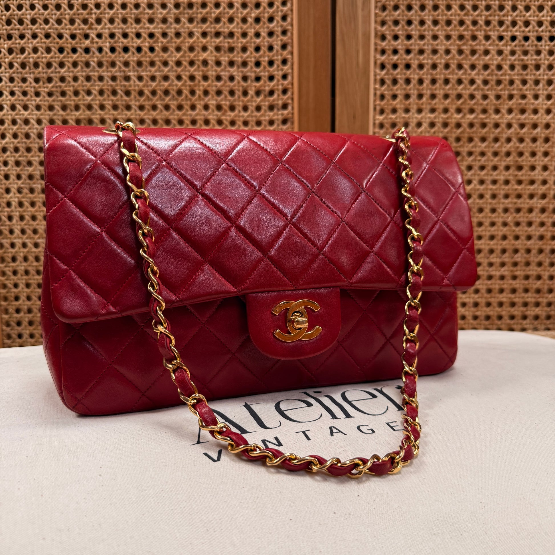 Chanel 1989 Red Lambskin Leather Classic Double Flap in Medium with 24k Gold Hardware