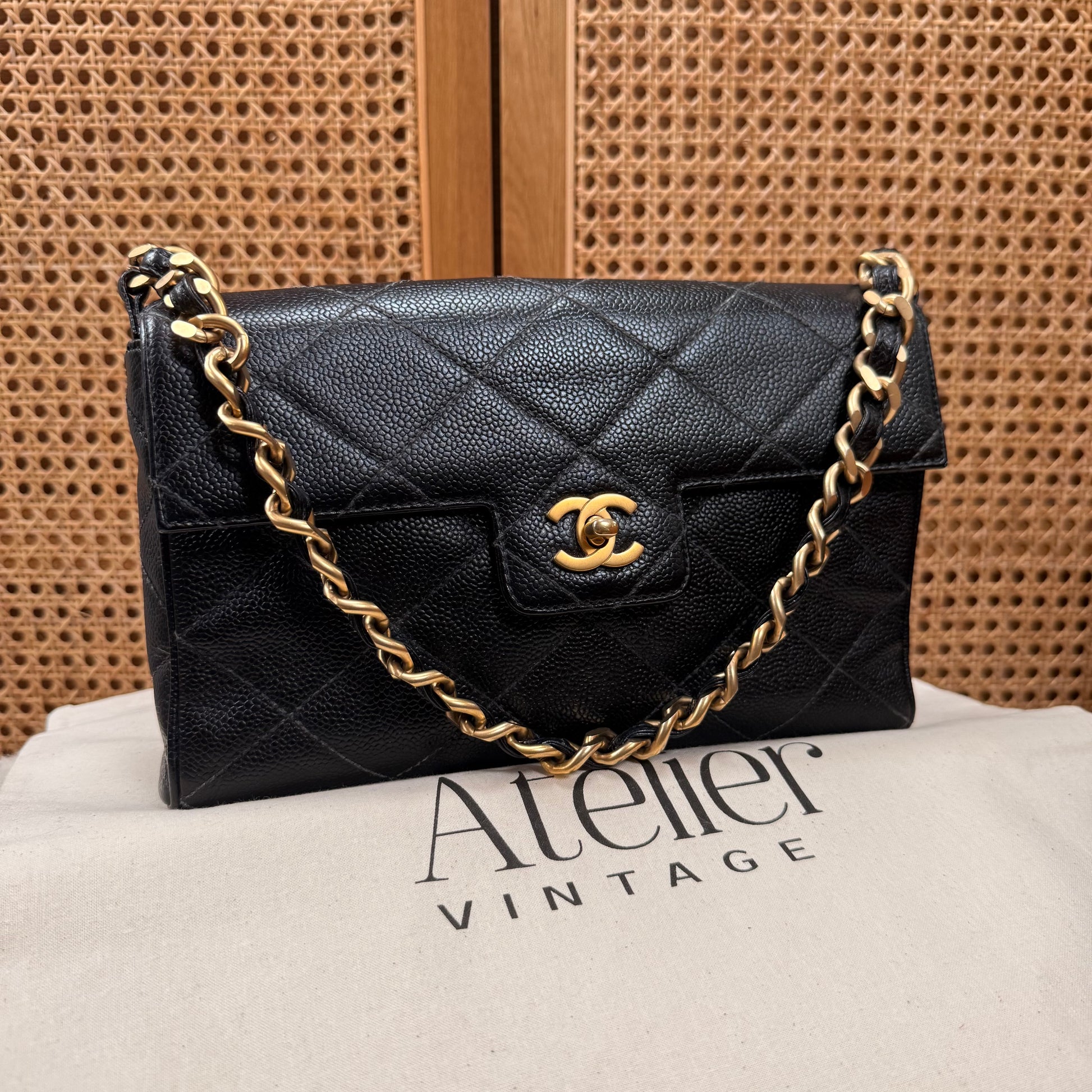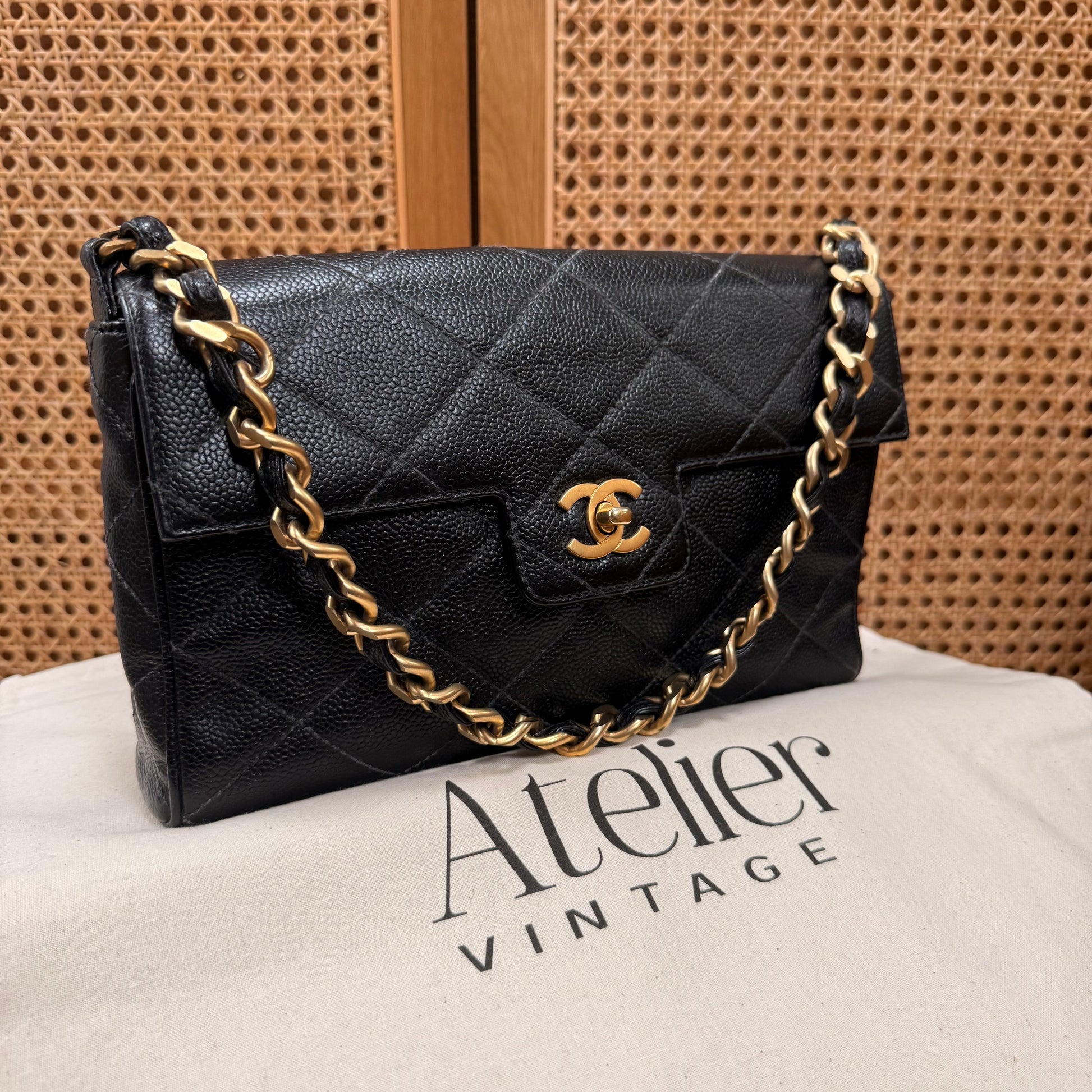 Chanel 2000 Rare Diamond Quilted Caviar Shoulder Bag
