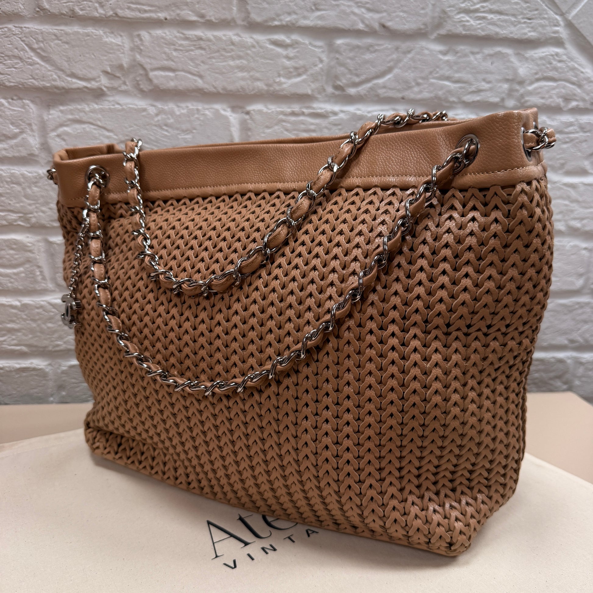 Chanel 2004 Beige Woven Caviar Leather Tote