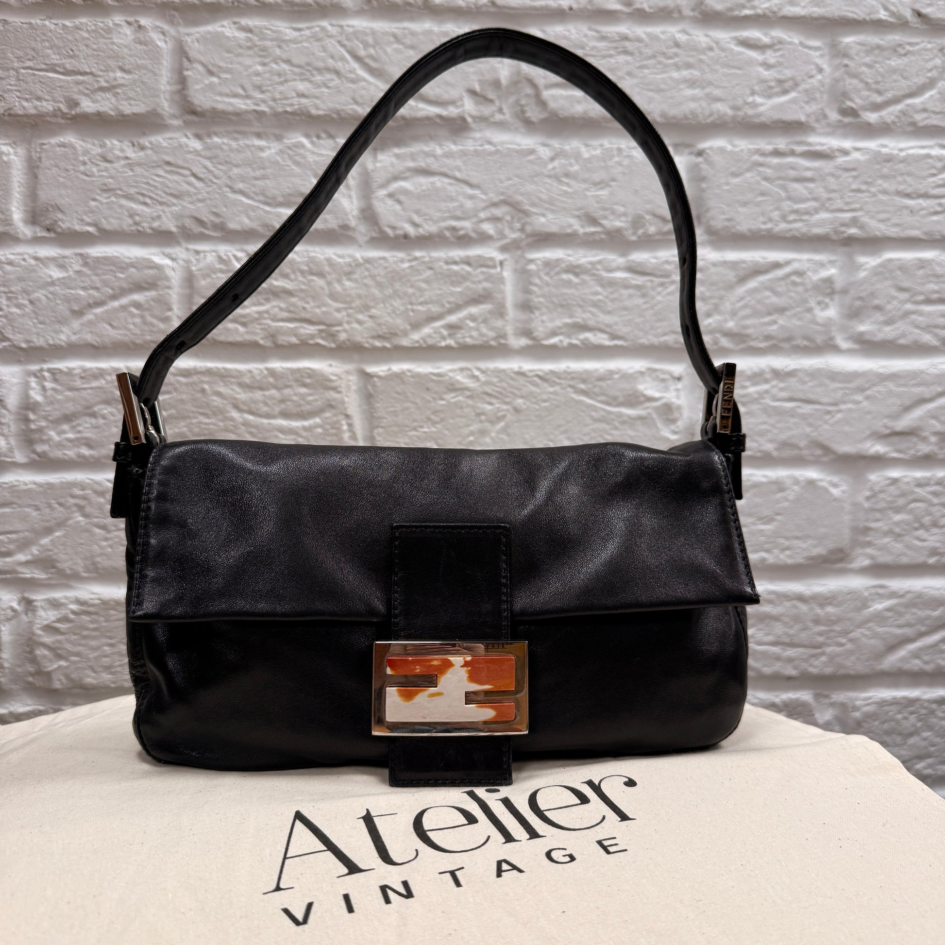 Fendi 1990s Original Fendi Baguette in black leather with limited edition animal print closure