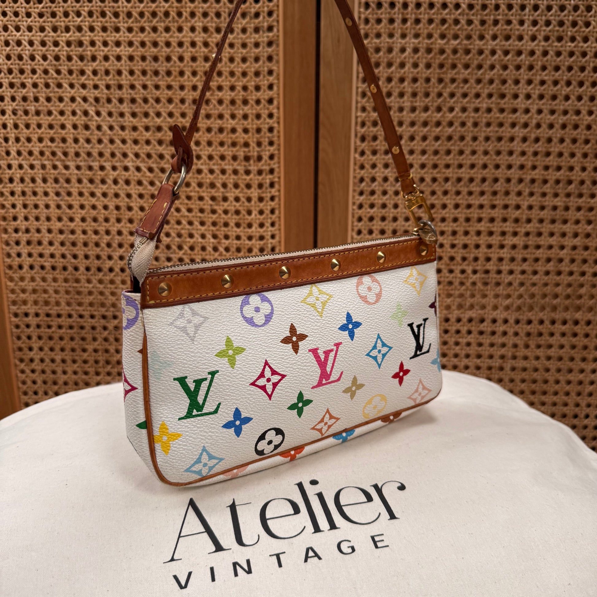 Louis Vuitton 2003 Murakami white Multi Color Pochette Accesssoires