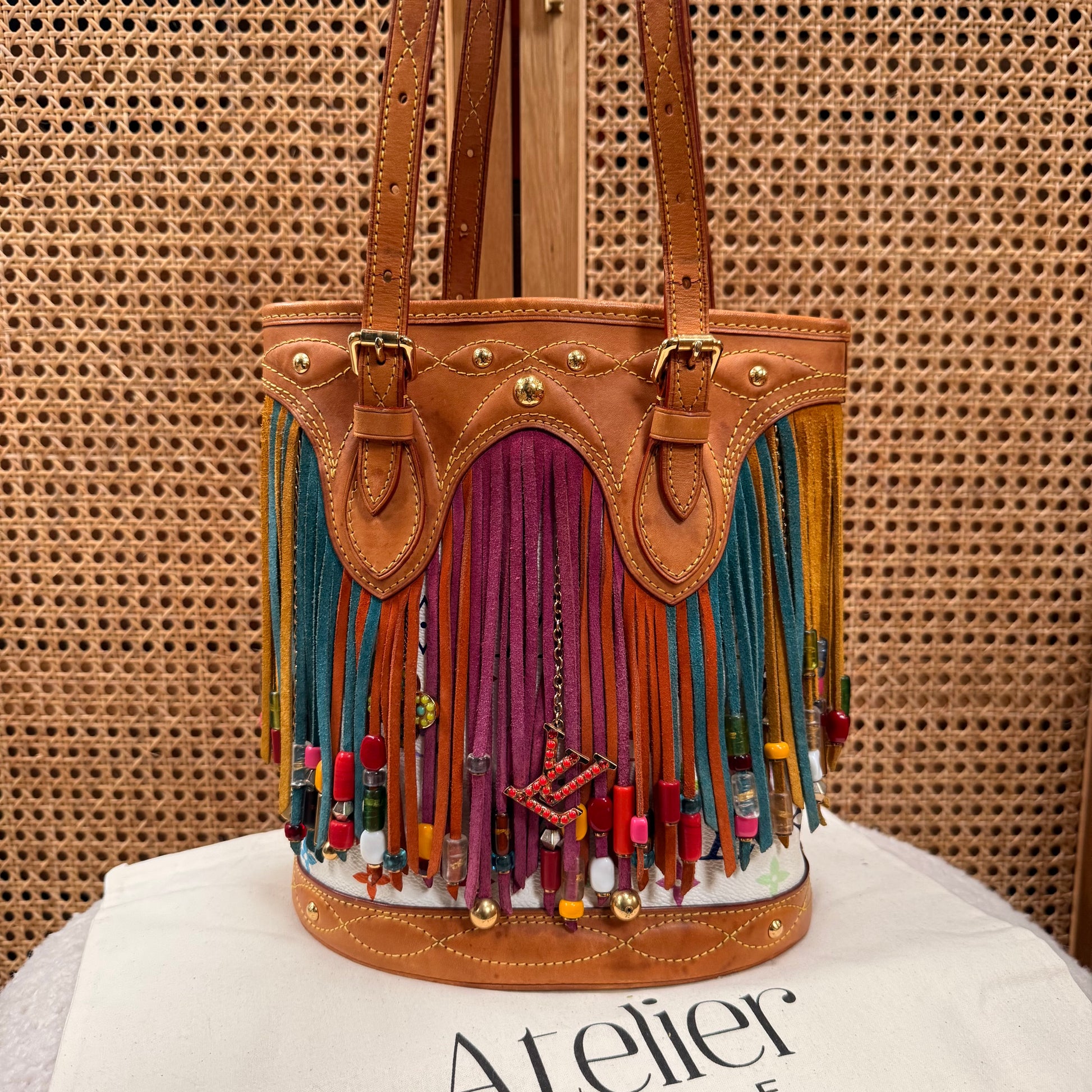 Louis Vuitton 2006 ULTRA RARE Murakami Suede and Beaded Fringe Bucket Bag
