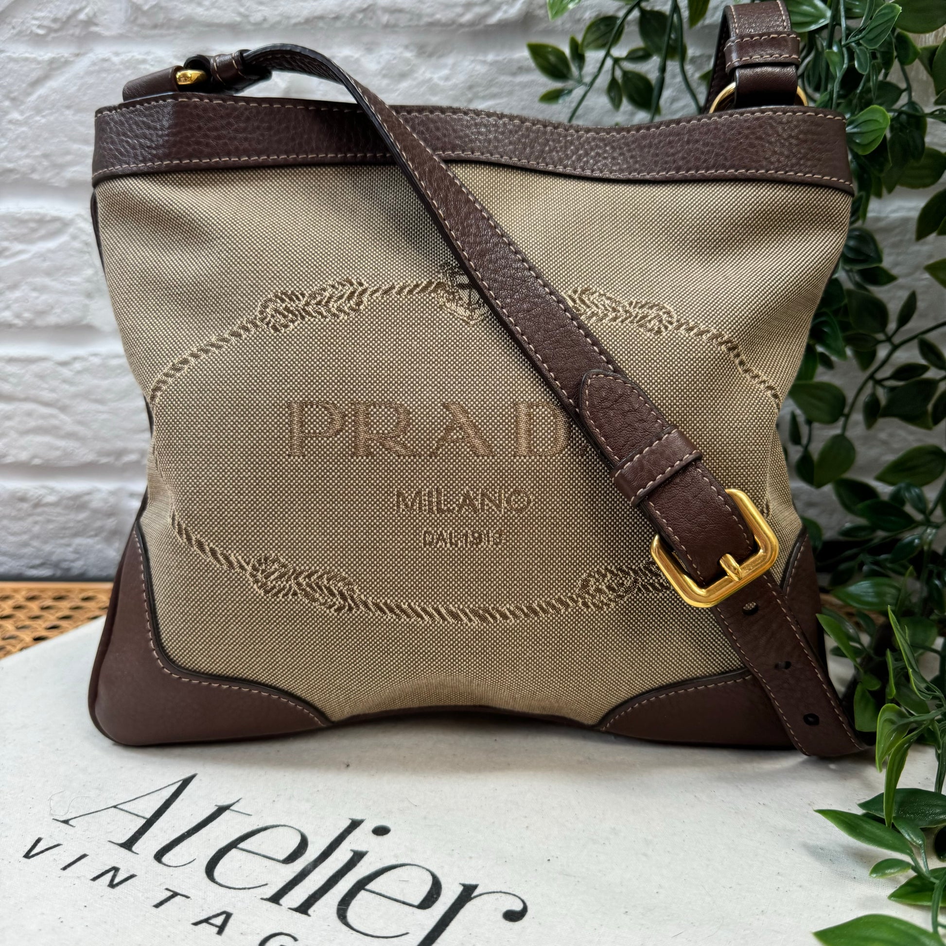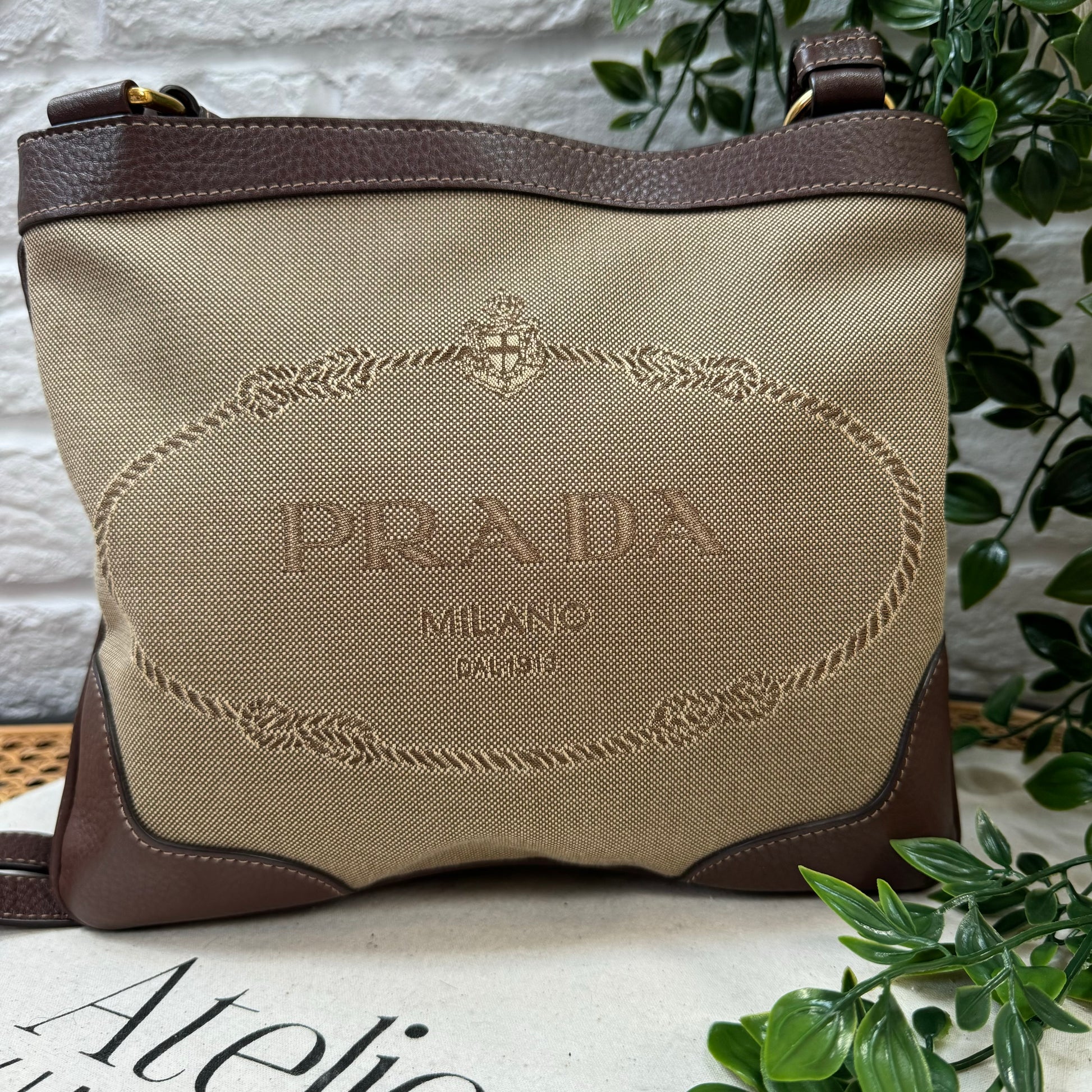 Prada Jacquard Brown/Beige Cross Body Messenger Bag